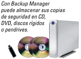 Se pueden guardar las Copias de Seguridad en diferentes soportes: Discos Rígidos, Memorias Flash extraíbles, Discos Compactos. |