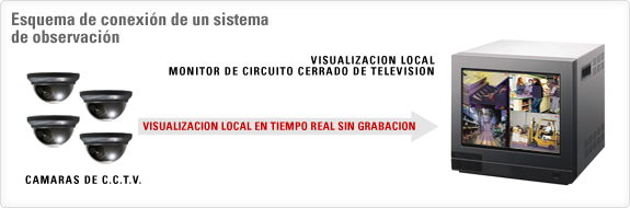 El sistema de C.C.T.V. más simple que podemos implementar se compone de una camara conectada a través de un cable o de manera inalámbrica a un monitor de C.C.T.V.